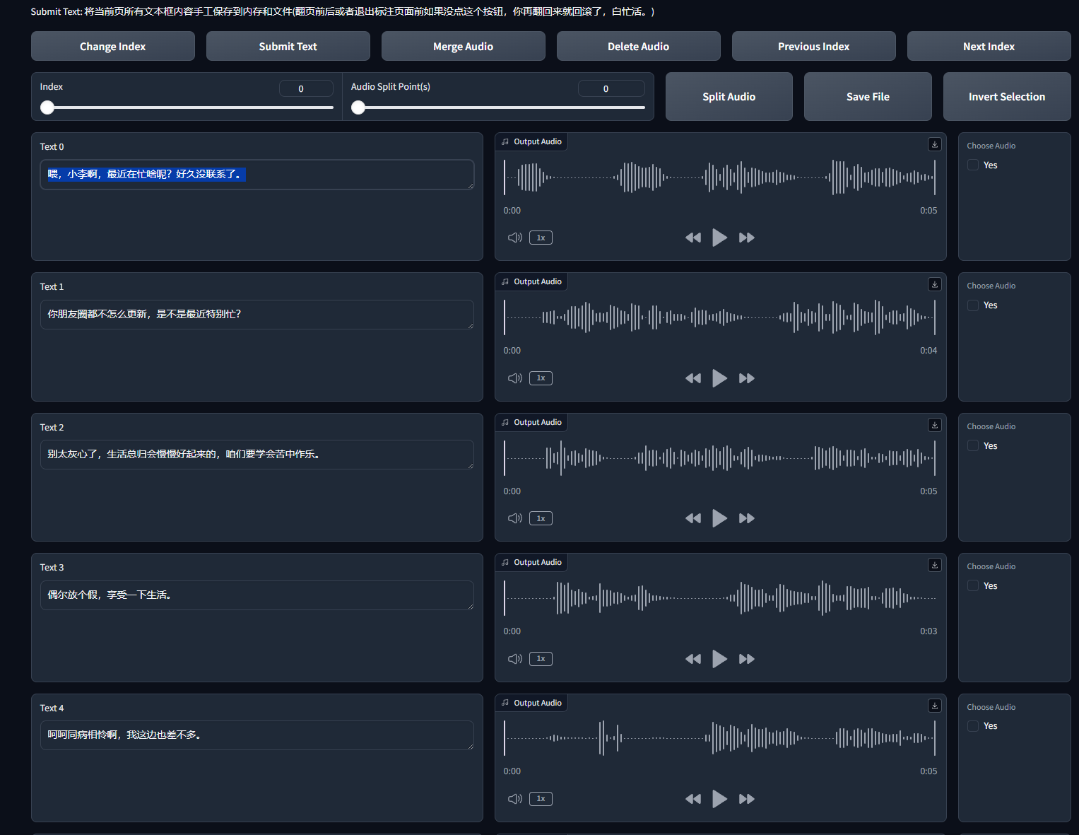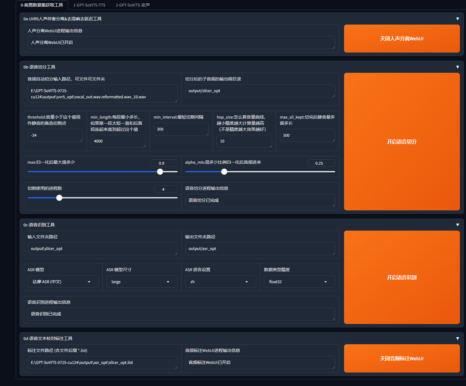 将音频提取后交给[GPT-SoVITS](RVC-Boss/GPT-SoVITS: 1 min voice data can also be used to train a good TTS model! (few shot voice cloning))(不唯一,其他的AItts也可)处理音频,训练音频等(详细步骤可以看GPT-SoVITS的操作文档)