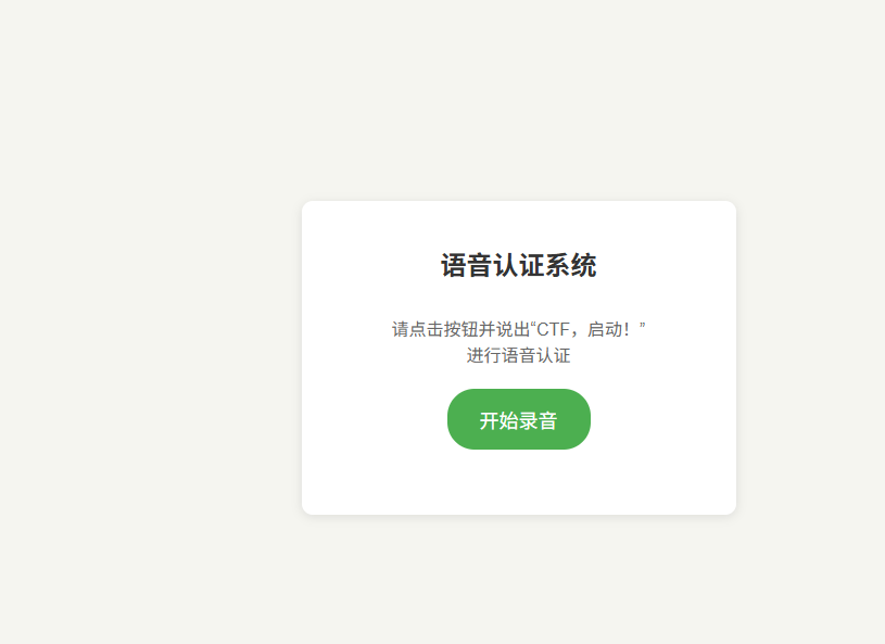 打开题目链接。是一个音频认证系统,要求说出CTF,启动通过认证来获取flag: