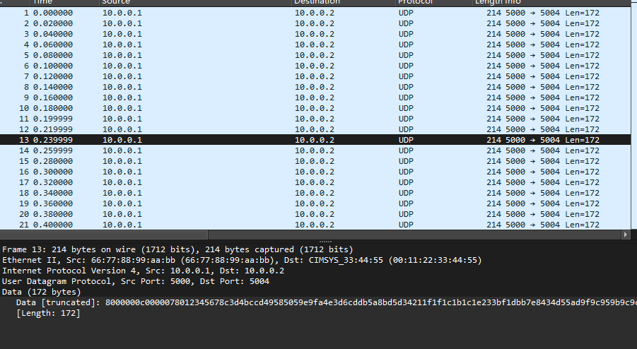 然后打开提供的流量文件,发现是一堆udp的数据:
